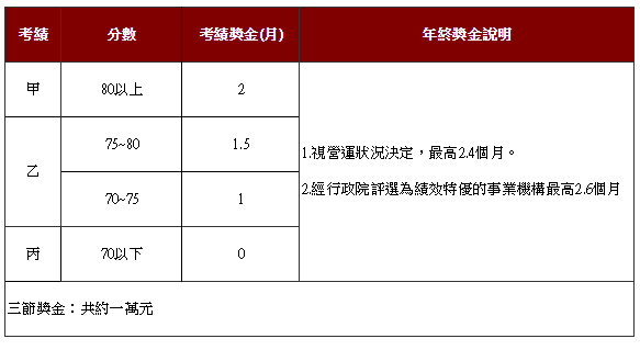 調薪,若工作表現良好,年終獎金加績效獎金,至高達4個多月,在加上大小補助